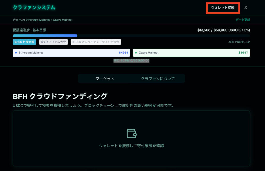 そしたら、右上の「ウォレット接続」からウォレットを接続します