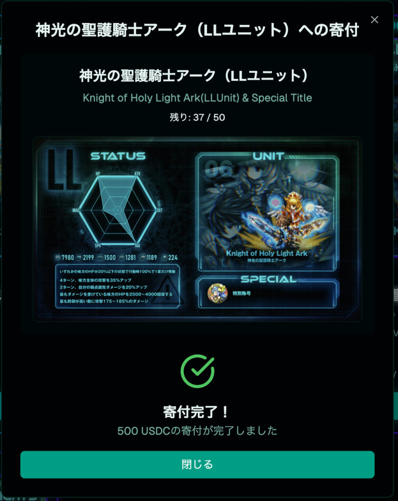 寄付完了!
