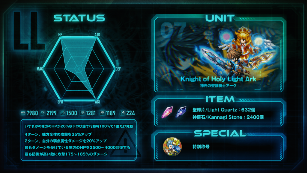 僕はLLユニットの、神光の聖護騎士アーク(LLユニット)を選んでみます