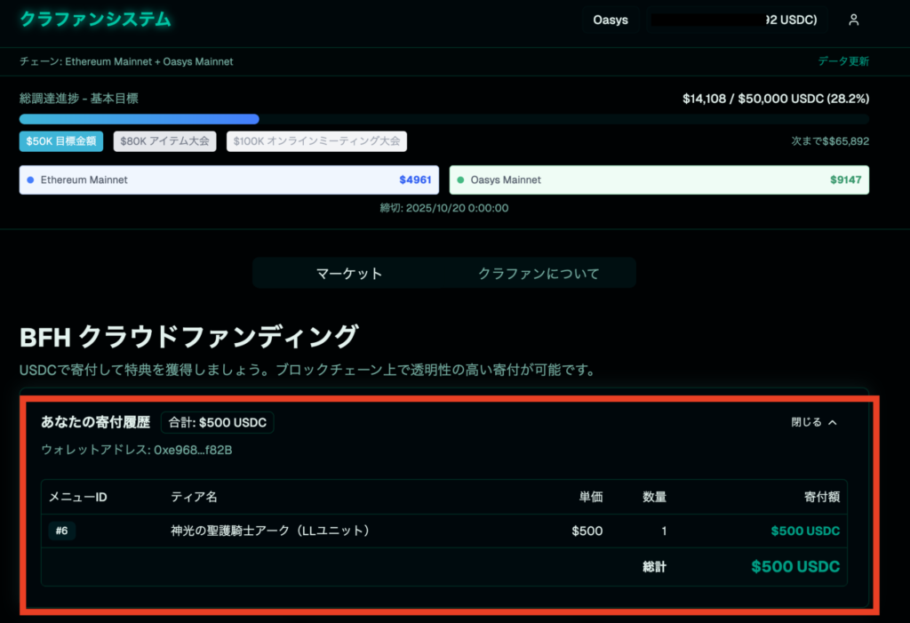 イーサリアムのUSDCで寄付する方はそのままOKですが